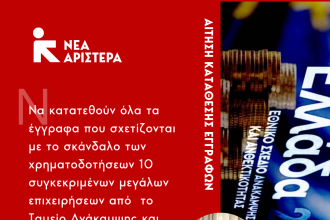 Αίτηση της Πέτης Πέρκα για κατάθεση όλων των έγγραφων που σχετίζονται με το σκάνδαλο των χρηματοδοτήσεων 10 συγκεκριμένων μεγάλων επιχειρήσεων από το Ταμείο Ανάκαμψης και Ανθεκτικότητας