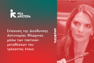 Αναφορά της Π. Πέρκα για την ενίσχυση της Διεύθυνσης Αστυνομίας Φλώρινας μέσω τακτικών μεταθέσεων του 2024