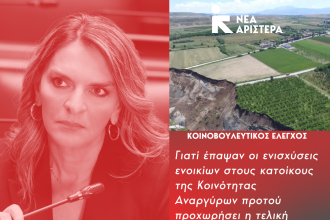Πέτη Πέρκα: «Γιατί έπαψαν οι ενισχύσεις ενοικίων στους κατοίκους της Κοινότητας Αναργύρων προτού προχωρήσει η τελική αποπληρωμή της αποζημίωσης τους;»