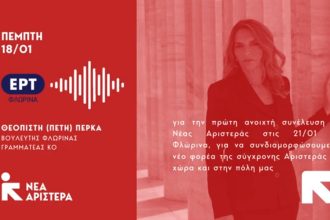 Η Πέτη Πέρκα στην ΕΡΤ Φλώρινας: «Καλούμε κάθε δημοκράτη πολίτη για να συνδιαμορφώσουμε το νέο φορέα της σύγχρονης Αριστεράς» (ηχητικό)