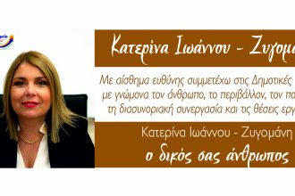 Υποψήφια Δημοτική Σύμβουλος με τον συνδυασμό “Αναπτυξιακή Πορεία” η Κατερίνα Ιωάννου – Ζυγομάνη