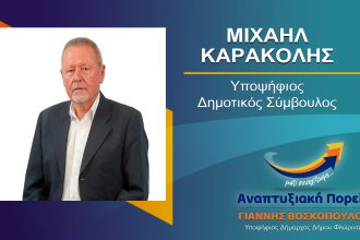 Υποψήφιος Δημοτικός Σύμβουλος με τον συνδυασμό “αναπτυξιακή πορεία” ο Μιχαήλ Καρακόλης