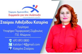 Η Κατερίνα Σταύρου υποψήφια περιφερειακή σύμβουλος Π.Ε. Φλώρινας με τον συνδυασμό “Συμμαχία για την ανάπτυξη”