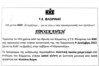 Η Τομεακή Επιτροπή Φλώρινας τους ΚΚΕ, τιμώντας τα 104 χρόνια από την…