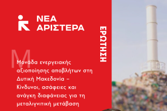 Ερώτηση Βουλευτών της Νέας Αριστεράς για τη σχεδιαζόμενη μονάδα καύσης απορριμμάτων στη Δυτική Μακεδονία – Ανάγκη διαφάνειας, διαβούλευσης και προστασίας του περιβάλλοντος