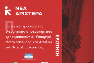 Ερώτηση Βουλευτών της Νέας Αριστεράς: «Ποια είναι η έννοια της ενεργητικής αποτροπής που χρησιμοποιούν οι Υπουργοί Μετανάστευσης και Ασύλου επί Νέας Δημοκρατίας;»