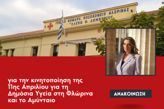 Ανακοίνωση της Βουλεύτριας Φλώρινας της Νέας Αριστεράς Π. Πέρκα για την κινητοποίηση της 11ης Απριλίου για τη Δημόσια Υγεία στη Φλώρινα και το Αμύνταιο