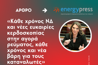 Π. Πέρκα: «Κάθε χρόνος ΝΔ και νέες ευκαιρίες κερδοσκοπίας στην αγορά ρεύματος, κάθε χρόνος και νέα βάρη για τους καταναλωτές»