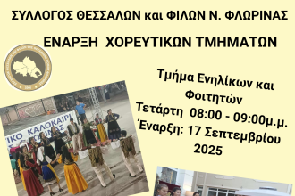 Μαθήματα παραδοσιακών χορών από τον Σύλλογο Θεσσαλών και φίλων Ν. Φλώρινας