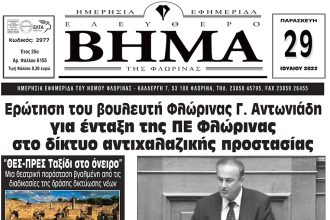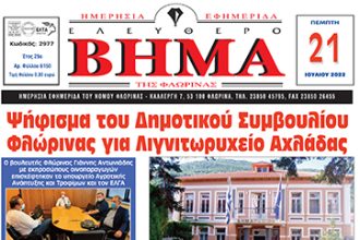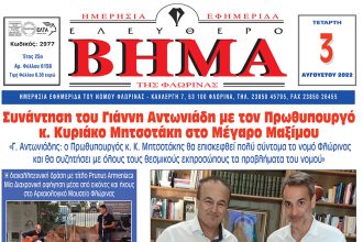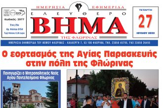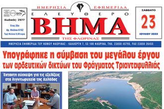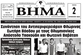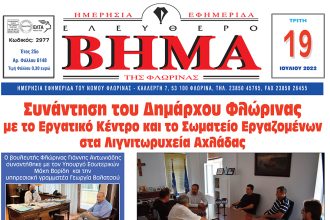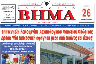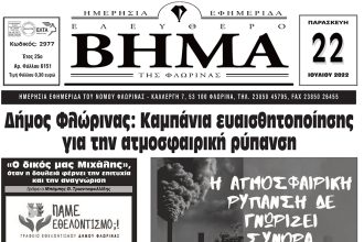 "Ελεύθερο Βήμα της Φλώρινας" Πρωτοσέλιδο Σάββατο 23-7-2022