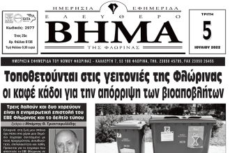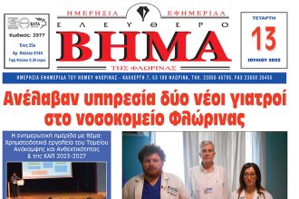 Πρωτοσέλιδο Ελεύθερο βήμα της Φλώρινας 13/7/22