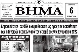 Πρωτοσέλιδο Ελεύθερο βήμα της Φλώρινας 6/7/22
