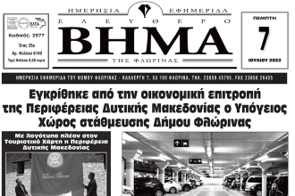 Πρωτοσέλιδο Ελεύθερο βήμα της Φλώρινας 5/7/22