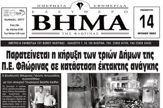 Πρωτοσέλιδο Ελεύθερο βήμα της Φλώρινας 14/7/2022