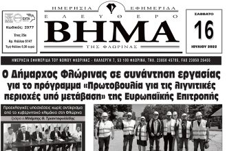 Πρωτοσέλιδο Ελεύθερο βήμα της Φλώρινας 16/7/22