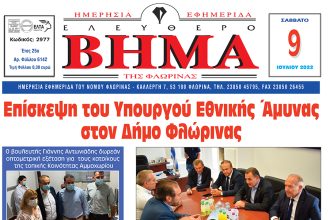 Πρωτοσέλιδο Ελεύθερο βήμα της Φλώρινας 9/7/22
