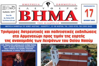 Πρωτοσέλιδο Ελεύθερο βήμα της Φλώρινας – 17/6/22