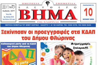 Πρωτοσέλιδο – Ελεύθερο βήμα της Φλώρινας – 11/6/22