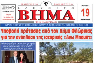 Πρωτοσέλιδο Ελεύθερο βήμα της Φλώρινας 19/5/22