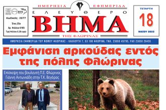 Πρωτοσέλιδο Ελεύθερο βήμα της Φλώρινας 18/5/22