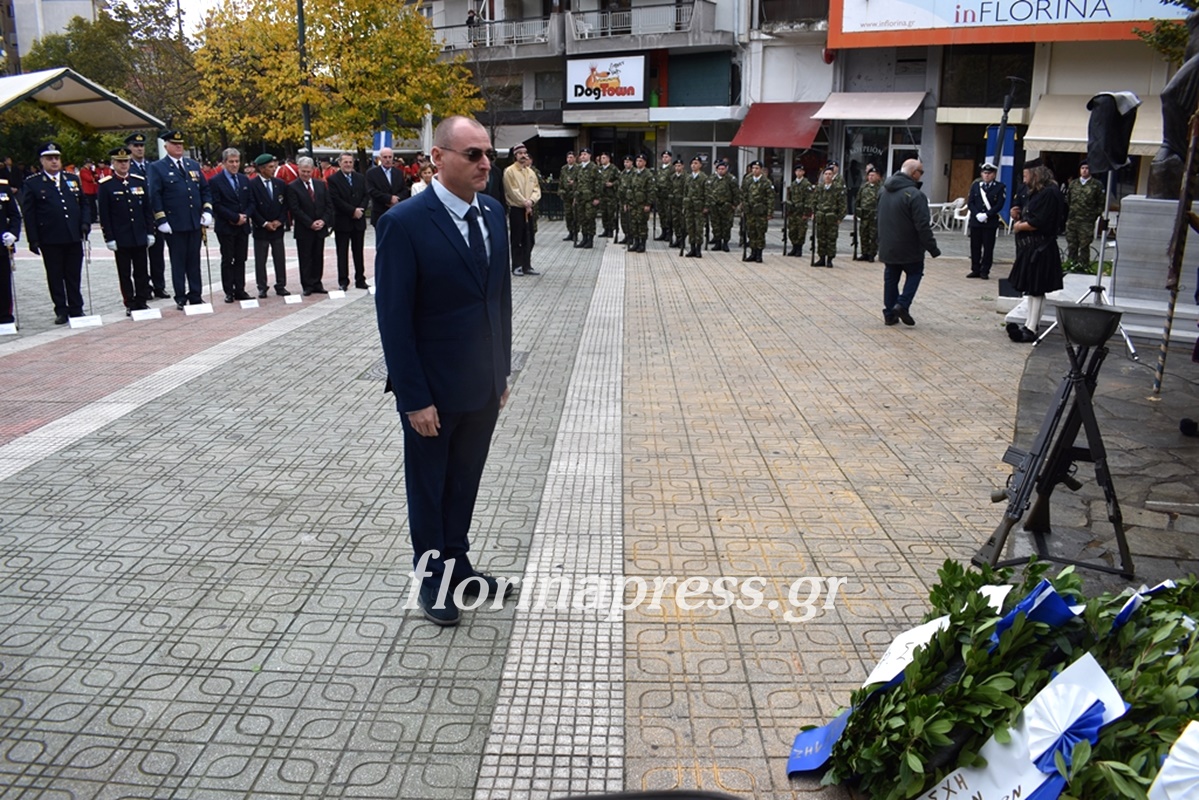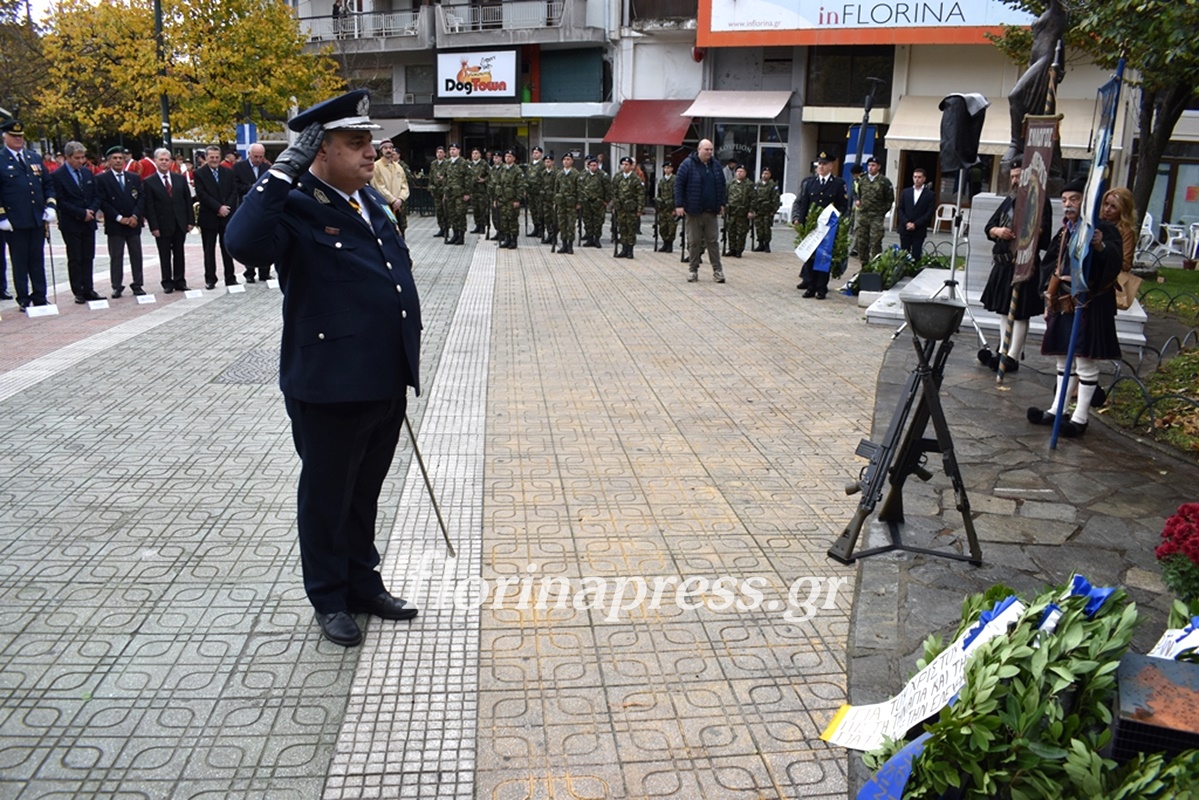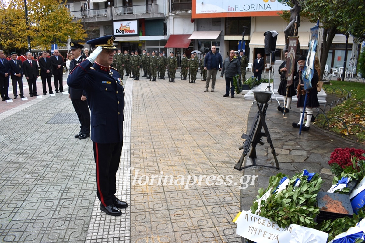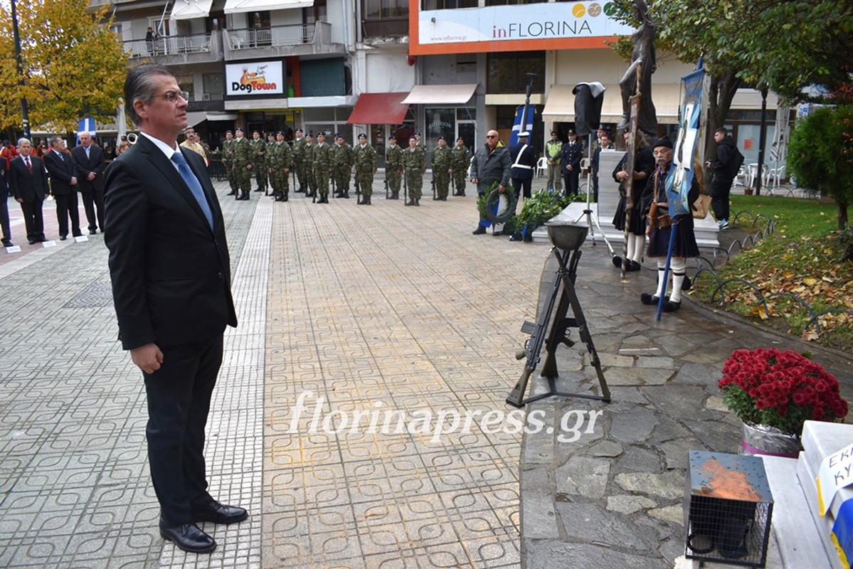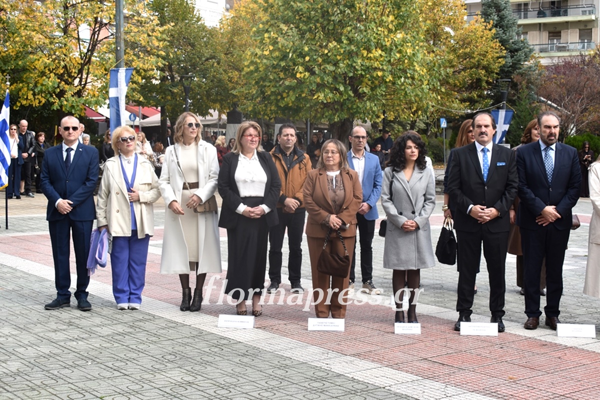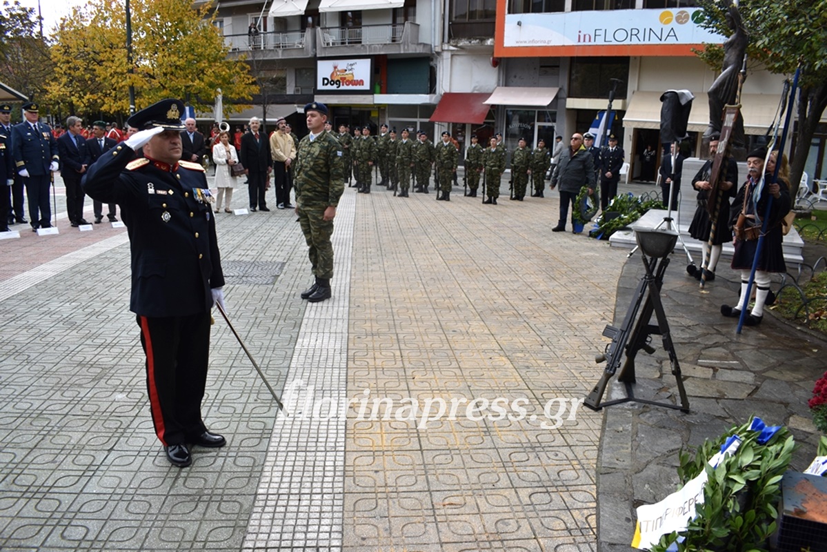 Πριν τη μαθητική και στρατιωτική παρέλαση στη Λεωφόρο Μακεδονομάχων, τελέστηκε επιμνημόσυνη δέηση στο μνημείο της πλατείας Γεωργίου Μόδη και ακολούθησε προσκλητήριο πεσόντων Φλωρινιωτών κατά τον πόλεμο του 1940 – 41, κατάθεση στεφάνων και η ανάκρουση του εθνικού ύμνου.