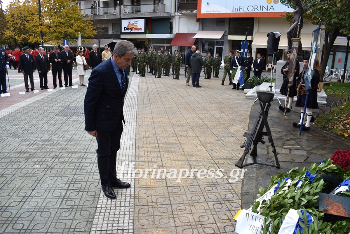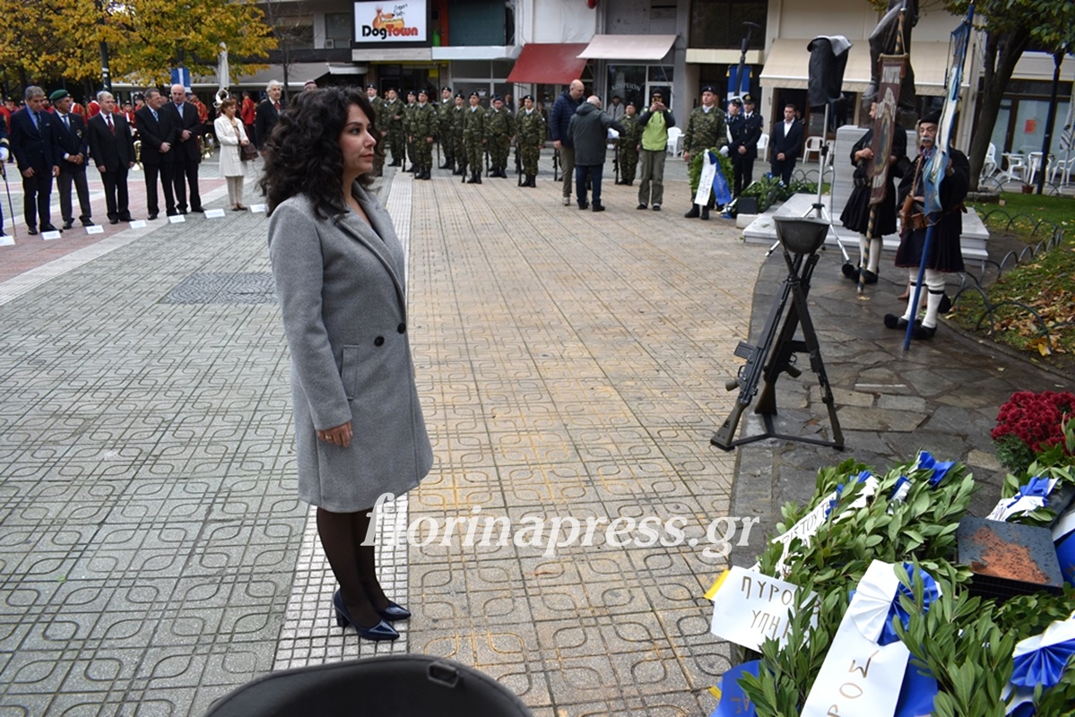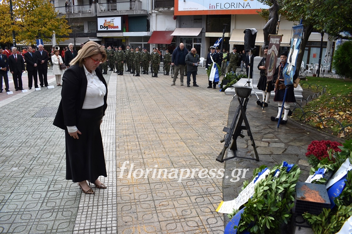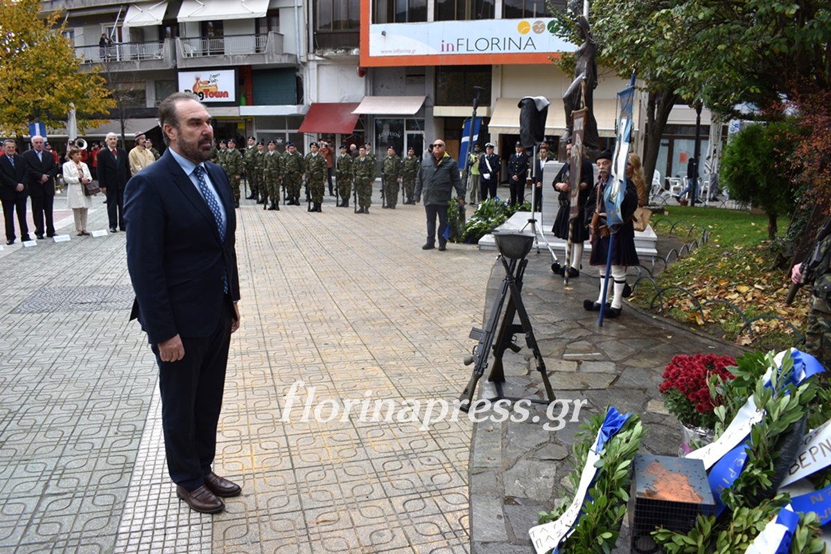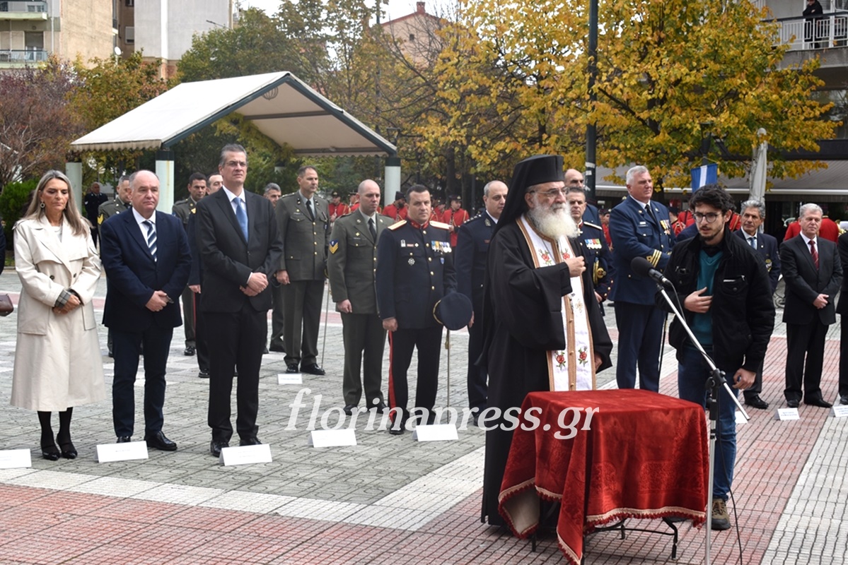 Πριν τη μαθητική και στρατιωτική παρέλαση στη Λεωφόρο Μακεδονομάχων, τελέστηκε επιμνημόσυνη δέηση στο μνημείο της πλατείας Γεωργίου Μόδη και ακολούθησε προσκλητήριο πεσόντων Φλωρινιωτών κατά τον πόλεμο του 1940 – 41, κατάθεση στεφάνων και η ανάκρουση του εθνικού ύμνου.