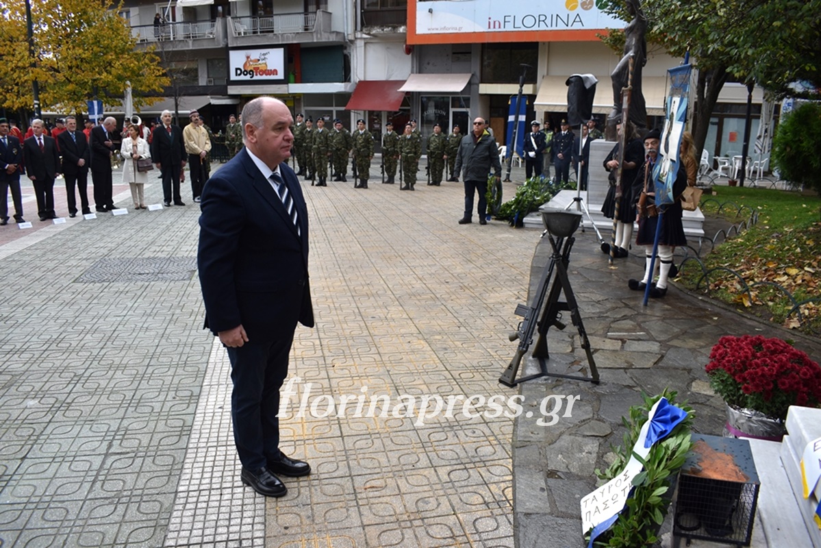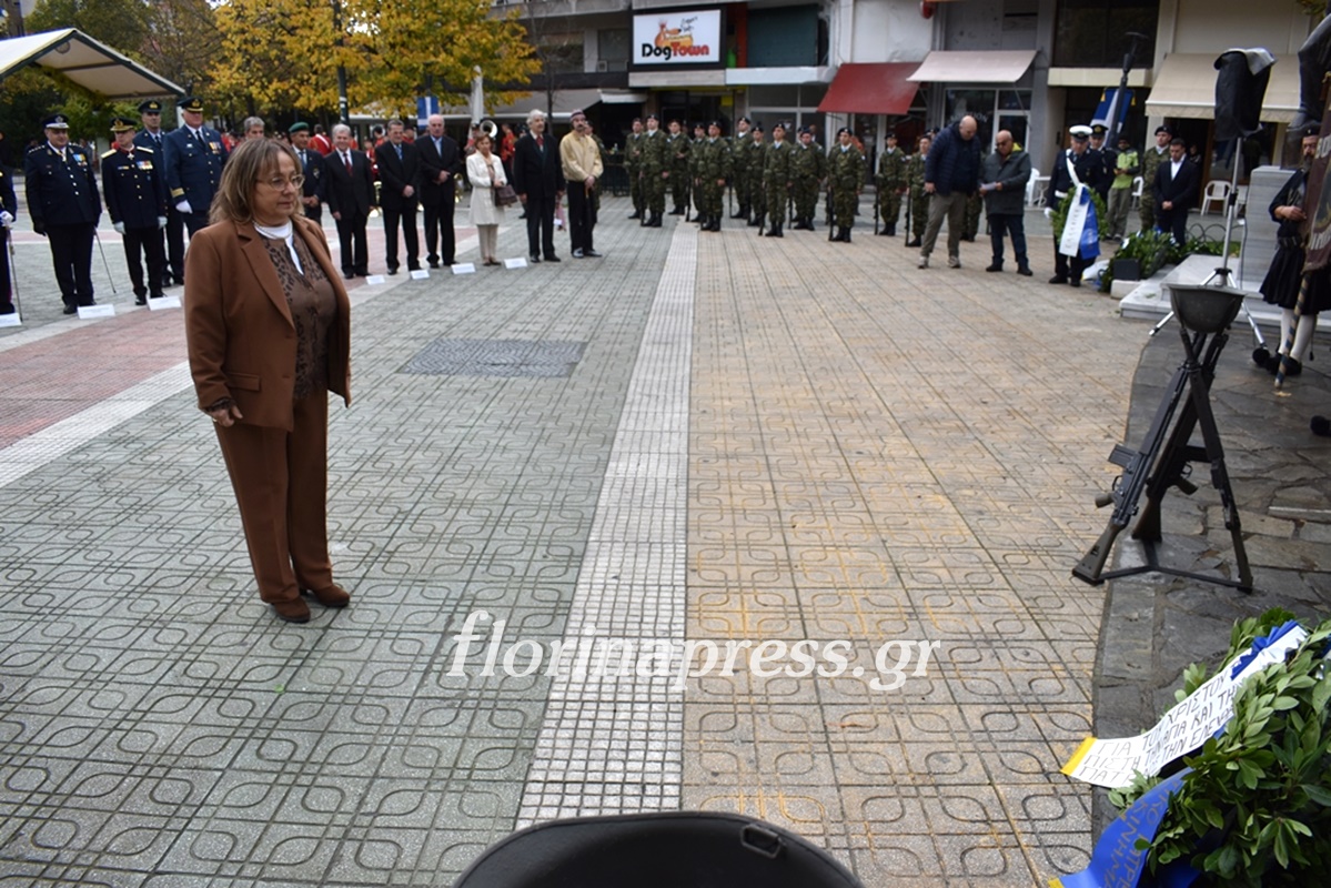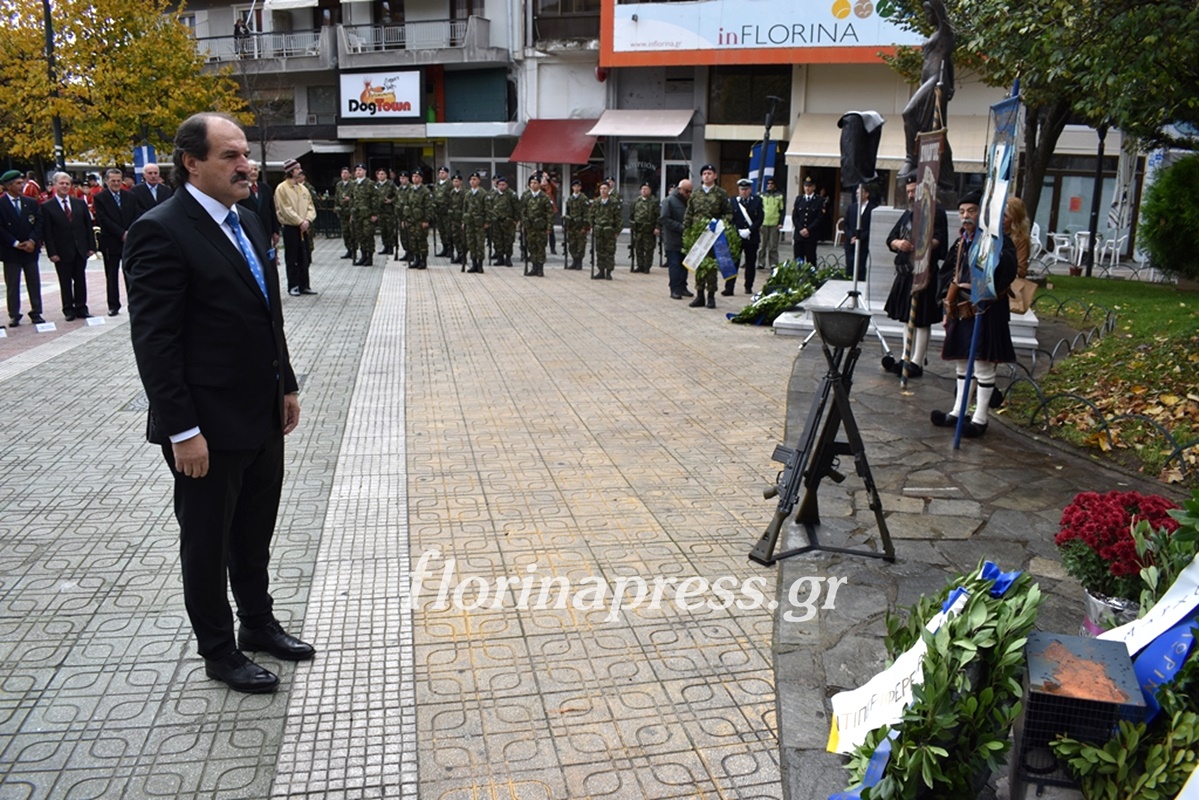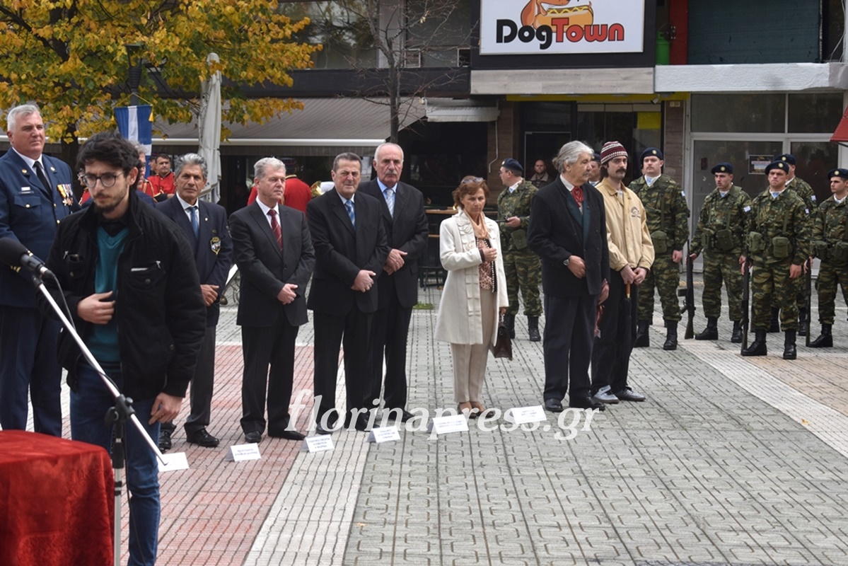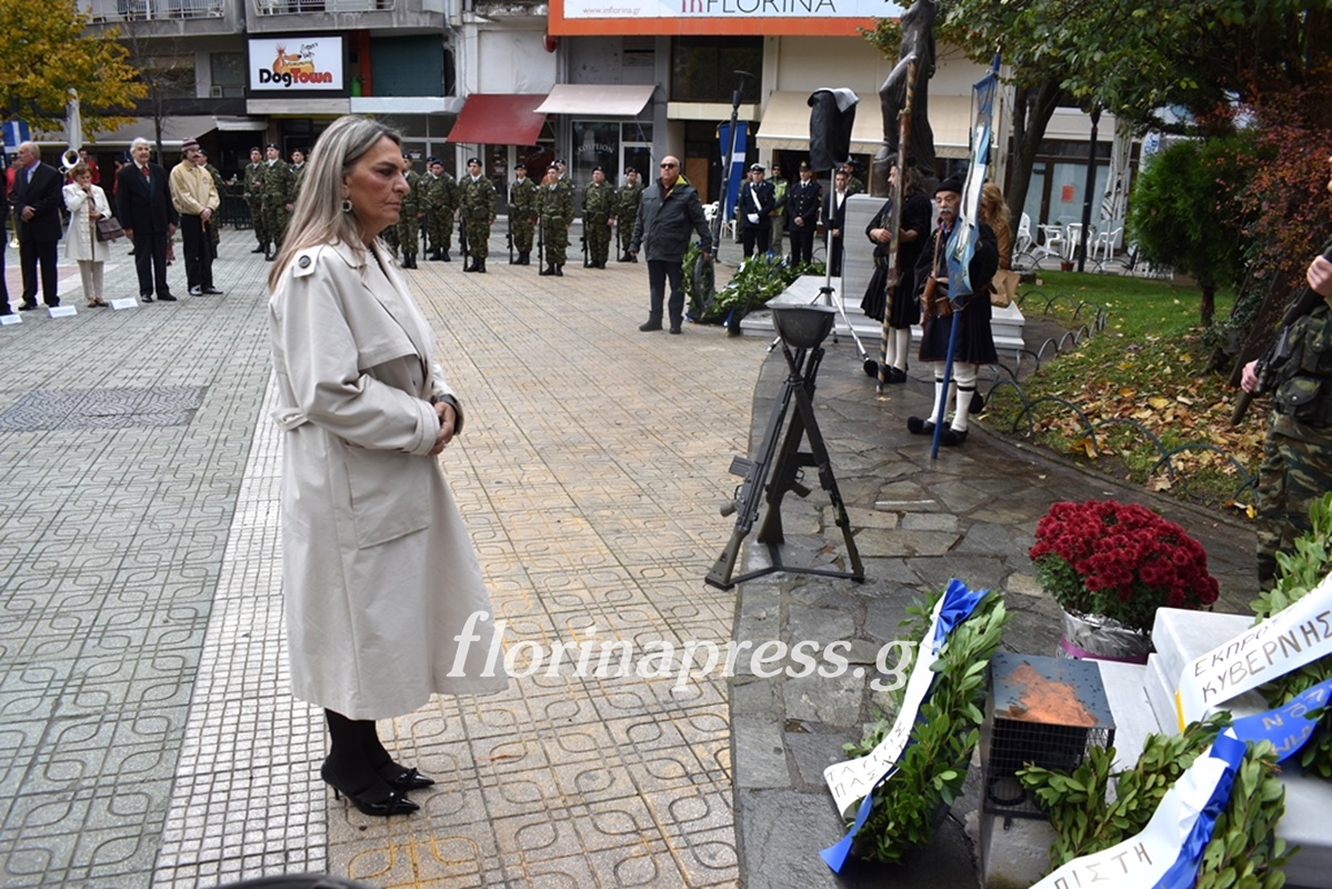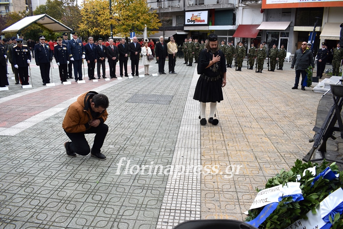 Πριν τη μαθητική και στρατιωτική παρέλαση στη Λεωφόρο Μακεδονομάχων, τελέστηκε επιμνημόσυνη δέηση στο μνημείο της πλατείας Γεωργίου Μόδη και ακολούθησε προσκλητήριο πεσόντων Φλωρινιωτών κατά τον πόλεμο του 1940 – 41, κατάθεση στεφάνων και η ανάκρουση του εθνικού ύμνου.
