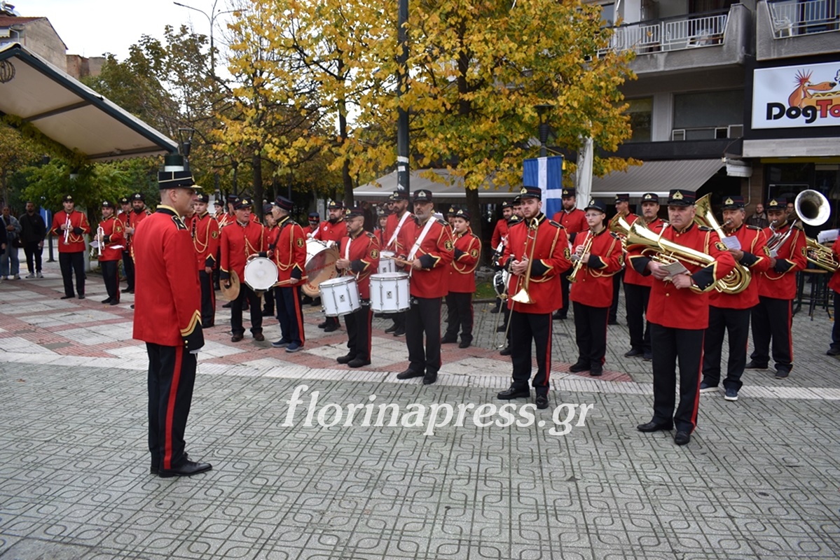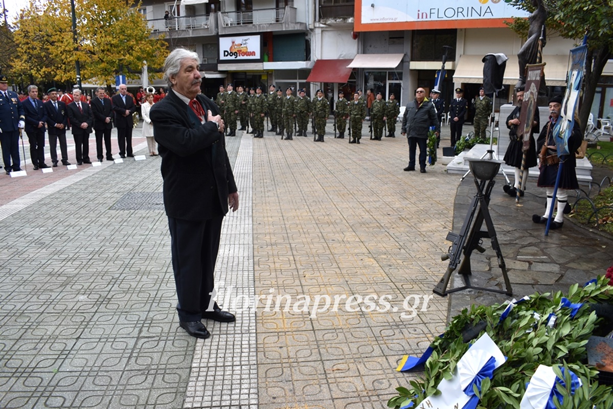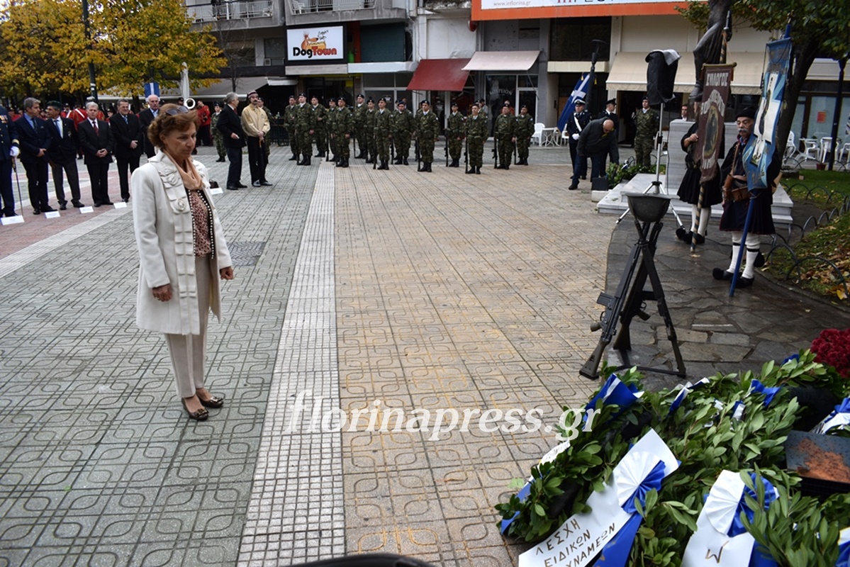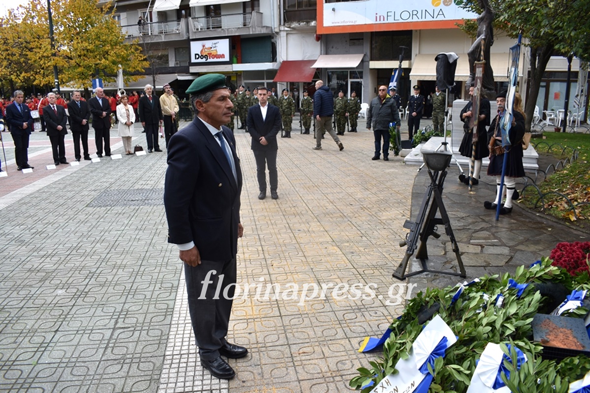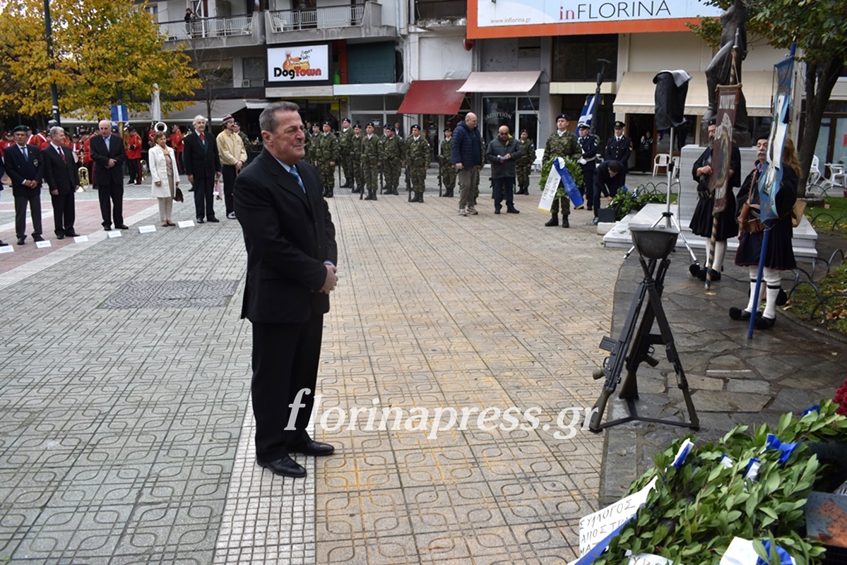 Πριν τη μαθητική και στρατιωτική παρέλαση στη Λεωφόρο Μακεδονομάχων, τελέστηκε επιμνημόσυνη δέηση στο μνημείο της πλατείας Γεωργίου Μόδη και ακολούθησε προσκλητήριο πεσόντων Φλωρινιωτών κατά τον πόλεμο του 1940 – 41, κατάθεση στεφάνων και η ανάκρουση του εθνικού ύμνου.