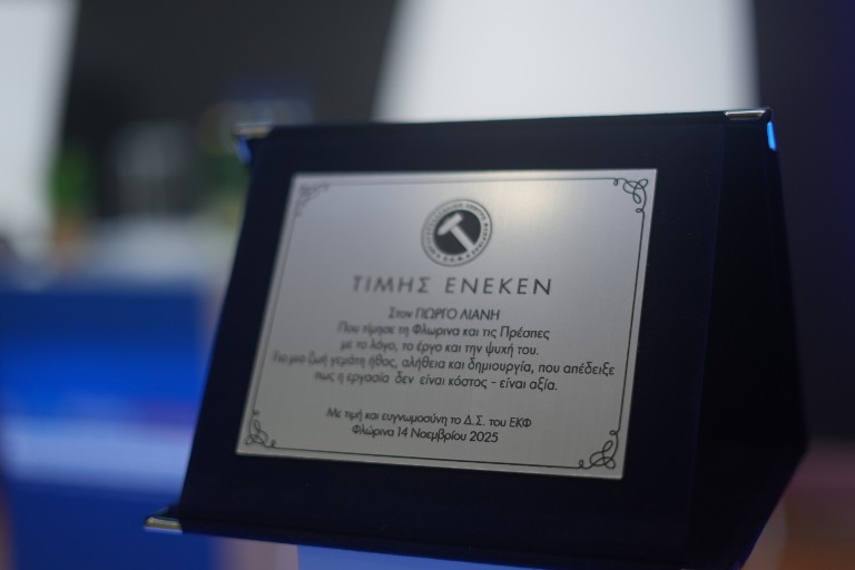 Στο πλαίσιο της εκδήλωσης, το Εργατικό Κέντρο Φλώρινας απένειμε Τιμητική Διάκριση στον Γεώργιο Λιάνη, τιμώντας στο πρόσωπό του τον εργαζόμενο άνθρωπο που δεν σταμάτησε ποτέ να δημιουργεί και να προσφέρει.