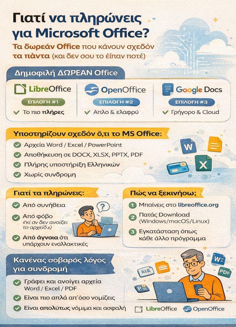 Πολλοί πολίτες πιστεύουν ότι για να γράψουν ένα έγγραφο, ένα βιογραφικό, μια πρόσκληση ή δελτίο τύπου ή να ανοίξουν ένα αρχείο Word, είναι υποχρεωμένοι να πληρώνουν Microsoft Office ή Microsoft 365.