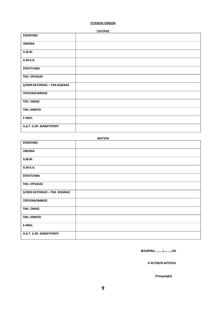 Αίτηση που δε συνοδεύεται από τα απαιτούμενα δικαιολογητικά μένει εκτός διαδικασίας επιλογής.