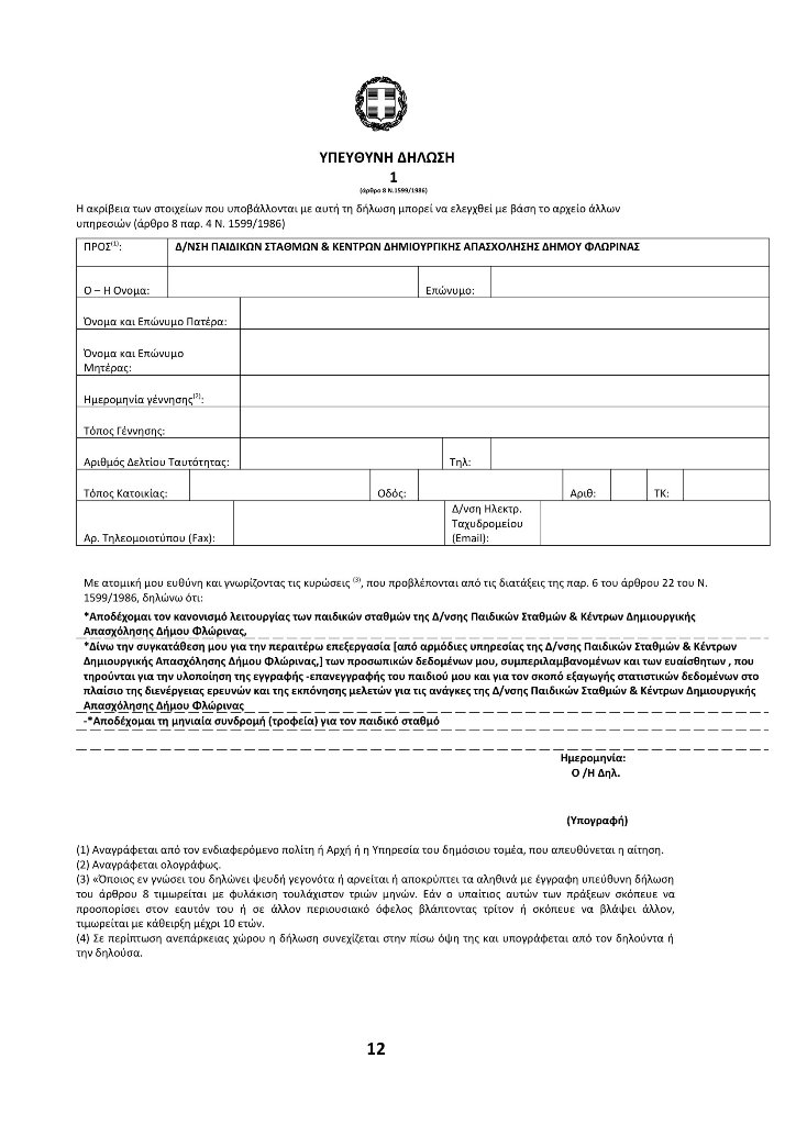 - Αίτηση του γονέα με την οποία θα ζητά την διαγραφή του παιδιού του από τον σταθμό.