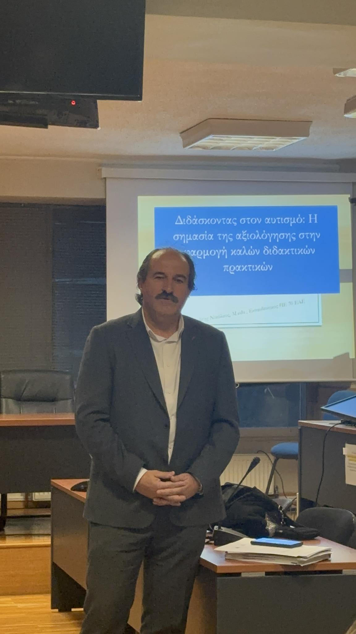 • Ο κ. Νικόλαος Γαλαρινιώτης, από το ΚΕΔΑΣΥ Φλώρινας, μίλησε για την σημασία της αξιολόγησηςτις σύγχρονες διδακτικές προκλήσεις στην εκπαίδευση μαθητών/μαθητριών στο φάσμα του αυτισμού.