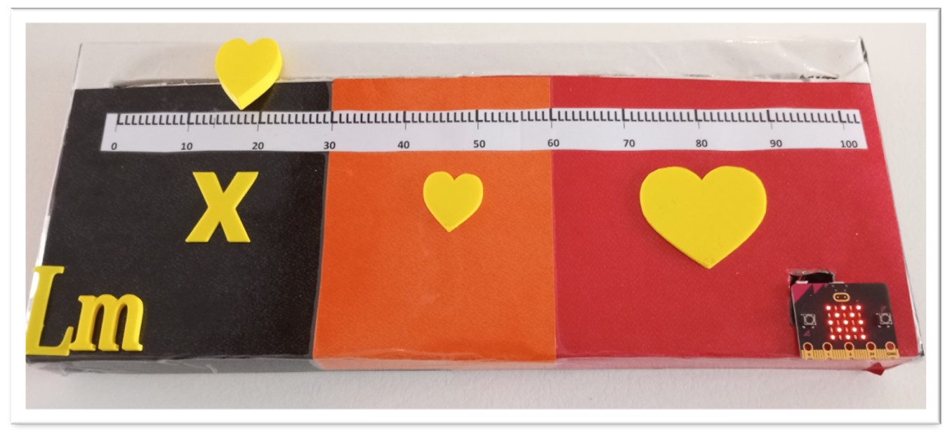 Επειδή θέλουμε να ενισχύσουμε την έννοια της φιλίας ακολουθούμε της εξής τακτική : Ο μαθητής σκέφτεται τον συμμαθητή του και συγκεκριμένα ένα γεγονός μαζί του ή κάποια κοινή στιγμή μαζί του. Στην συνέχεια πατάει με τα 2 δάχτυλά του τα κουμπιά Α και Β του microbit ώστε το συναίσθημα που νιώθει να «περάσει» μέσα στο microbit και να το αξιολογήσει. Μετά από 3 δευτερόλεπτα (χρόνος επεξεργασίας συναισθήματος) αναγράφεται στην οθόνη του microbit το ποσοστό αγάπης που είχε αυτό το συναίσθημα. Εάν το ποσοστό είναι 0-30 βγαίνει στο σύμβολο «Χ» αρνητικό συναίσθημα , αν το ποσοστό είναι 31-60 βγαίνει μια μικρή καρδιά που σημαίνει ότι υπάρχει συμπάθεια και αν το ποσοστό είναι από 60-100 βγαίνει μια μεγάλη καρδιά που σημαίνει αγάπη.