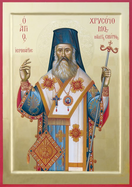 Η μορφή του διδάσκει πρώτα εμάς τους ποιμένες. Διότι η Αρχιερωσύνη είναι διακονία, είναι Σταυρός. Ο Σμύρνης Χρυσόστομος έγραψε το πιο δυνατό εγχειρίδιο ποιμαντικής, όχι με μελάνι, αλλά με το ίδιο του το αίμα.