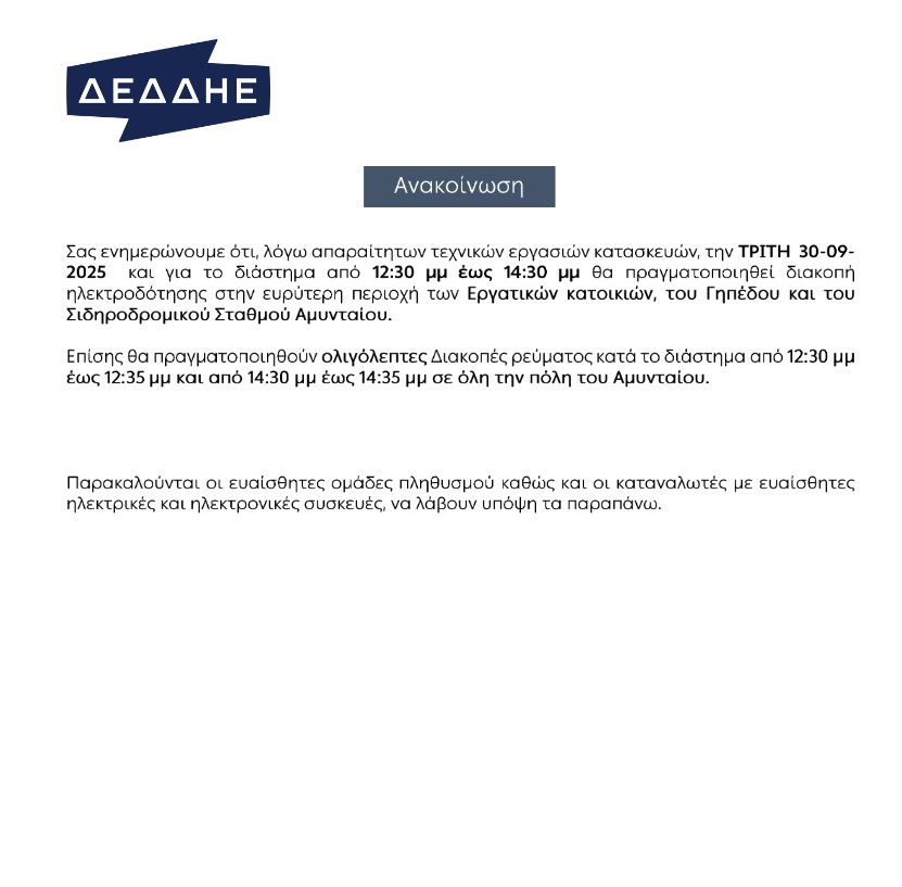 ΚοινωνίαΔιακοπή ηλεκτροδότησης στην ευρύτερη περιοχή των Εργατικών κατοικιών, του Γηπέδου και του Σιδηροδρομικού Σταθμού Αμυνταίου Δευτέρα 29 Σεπτεμβρίου, 2025 13:32 florinapress.gr SHARE Ίσως να ενδιαφέρει ... Κλειστά τα σχολεία του Δήμου Φλώρινας τη Δευτέρα 18 Ιανουαρίου ΣΑΛΦ: Πρωταθλητής Ελλάδος ξανά ο Θανάσης Παλιογιάννης Ξεκίνησαν σήμερα οι εγγραφές σε παιδικούς σταθμούς και ΚΔΑΠ 45 ΧΡΟΝΙΑ ΜΕΤΑ ΣΥΝΑΝΤΗΣΗ ΣΥΜΜΑΘΗΤΩΝ Κάλσεμα του Αγροτικού Συλλόγου Αμυνταίου σε ευρεία σύσκεψη Share Ακολουθήστε μας8.4kFollowersLikeΤελευταία νέα Αγανακτισμένοι αγρότες : Ως εδώ, η κατάσταση δεν πάει άλλο Κοινωνία Πέμπτη 4 Δεκεμβρίου, 2025 Επισκέψεις Κινητών Μονάδων Υγείας σε απομακρυσμένες Κοινότητες του Δήμου Αμυνταίου Κοινωνία Πέμπτη 4 Δεκεμβρίου, 2025 Ευχαριστήρια επιστολή του Πειραματικού Σχολείου Φλώρινας προς το Κέντρο Περιβαλλοντικής Εκπαίδευσης & Αειφορίας Μελίτης Κοινωνία Πέμπτη 4 Δεκεμβρίου, 2025 Πωλείται Γερμανικός λέβητας ξύλου Κοινωνία Πέμπτη 4 Δεκεμβρίου, 2025
