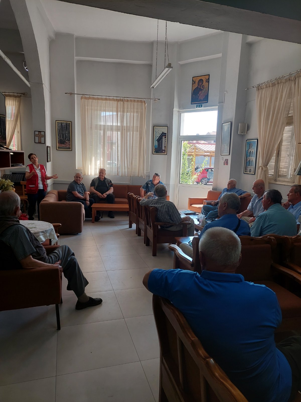 β) 23/6/25: Τα προληπτικά μέτρα προστασίας από πτώσεις εντός και εκτός κατοικίας, αφού τα αποτελέσματα τέτοιων καταστάσεων είναι εξαιρετικά δυσχερή για τα άτομα της τρίτης ηλικίας. Έγινε πρακτική επίδειξη παροχής Π.Β. σε συνήθεις σκελετικές κακώσεις όπως το διάστρεμμα και το εξάρθημα με εφαρμογή τακτικών σταθεροποίησης και ορθής χρήσης ελαστικών επιδέσμων και ναρθήκων, ενώ τονίστηκε η απόλυτη ανάγκη μη μετακίνησης θυμάτων όταν υπάρχει υποψία καταγμάτων. Το ζωηρό ενδιαφέρον των συμμετεχόντων/ουσών, οι πυκνές ερωτήσεις και οι συναφείς διάλογοι που σημειώθηκαν και στις δύο συναντήσεις, πρόσθεσαν πολλές ιδέες και λύσεις για την πρόληψη των καταστάσεων υπερ-θέρμανσης καθώς και των πτώσεων και των ατυχημάτων, ώστε καθένας/μία να εφαρμόσει στην καθημερινότητά του όσα περισσότερα μέτρα μπορεί προς βελτίωση των όρων ασφαλούς διαβίωσης, μετριασμό της ευπά-θειας και ενδυνάμωσης της κοινωνικής ανθεκτικότητας.