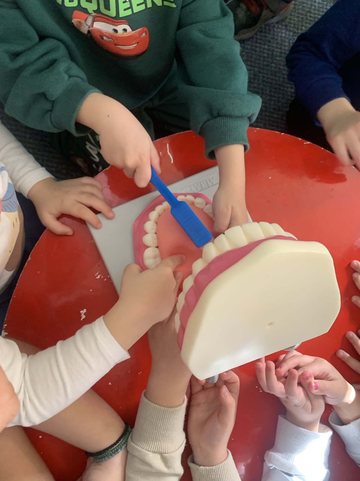-Ατομική Υγιεινή: Η Νοσηλεύτρια-Εκπαιδεύτρια του Τμήματος σε ειδική συνεργασία με ομάδα φοιτητών Π.Δ.Μ. Παιδαγωγικής Σχολής Νηπιαγωγών Φλώρινας πραγματοποίησε δράση εκπαίδευσης σχετική με την φροντίδα της στοματικής κοιλότητας και την αναγκαιότητα πρόληψης οδοντιατρικών προ-βλημάτων, καθώς και με την υγιεινή των χεριών στους μαθητές του 5ου Νηπιαγωγείου Φλώρινας. Τα παιδιά με τη βοήθεια ειδικών προπλασμάτων ασκήθηκαν στη σωστή τεχνική βουρτσίσματος των δοντιών και με τη χρήση απτών μέσων αντιλήφθηκαν την αξία της τακτικής καθαριότητας των χεριών, μέσα από βιωματικές δραστηριότητες.