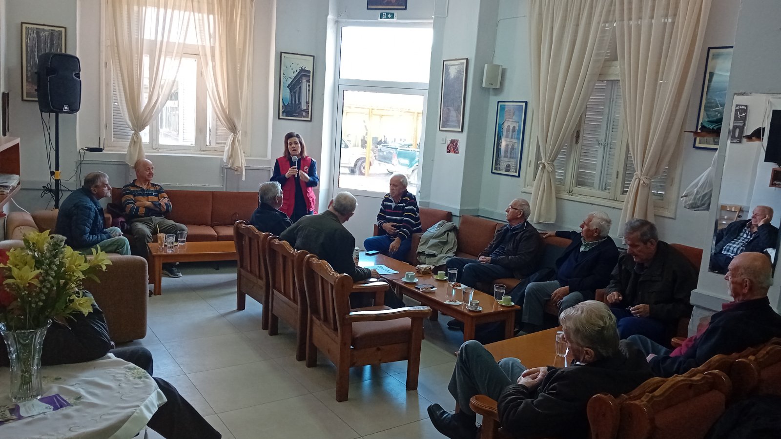 Β) Ειδική συνεργασία με ΚΑΠΗ και ΚΗΦΗ Δήμου Φλώρινας: Σε συνέχιση της ειδικής συνεργασίας του Τμήματος με την αρμόδια Υπηρεσία Κοινωνικής Προστασίας του Δήμου Φλώρινας για τακτικές σύντομες παρουσιάσεις θεμάτων Πρώτων Βοηθειών στα μέλη του ΚΑΠΗ και του ΚΗΦΗ Φλώρινας, η Νοσηλεύτρια-Εκπαιδεύτρια επισκέφθηκε τον φιλόξενο χώρο των δομών και ανέπτυξε το θέμα: “Καρδιακά Επεισόδια (Στηθάγχη-Έμφραγμα): Αναγνώριση συμπτωμάτων και Πρώτη Βοήθεια -Προληπτικά μέτρα” . Το ζωηρό ενδιαφέρον των συμμετεχόντων/ουσών, οι πυκνές ερωτήσεις και οι συναφείς διάλογοι που σημειώθηκαν κατέδειξαν και αναπτέρωσαν την υιοθέτηση ορθών καθημερινών πρακτικών συμπεριφορών προς βελτίωση των όρων ασφαλούς διαβίωσης, μετριασμό της ευπάθειας και ενδυνάμωση της κοινωνικής ανθεκτικότητας, ιδίως για τους ηλικιωμένους συμπολίτες μας που αποτελούν μια ευπαθή μεν αλλά απολύτως δυναμική ομάδα του κοινωνικού συνόλου.