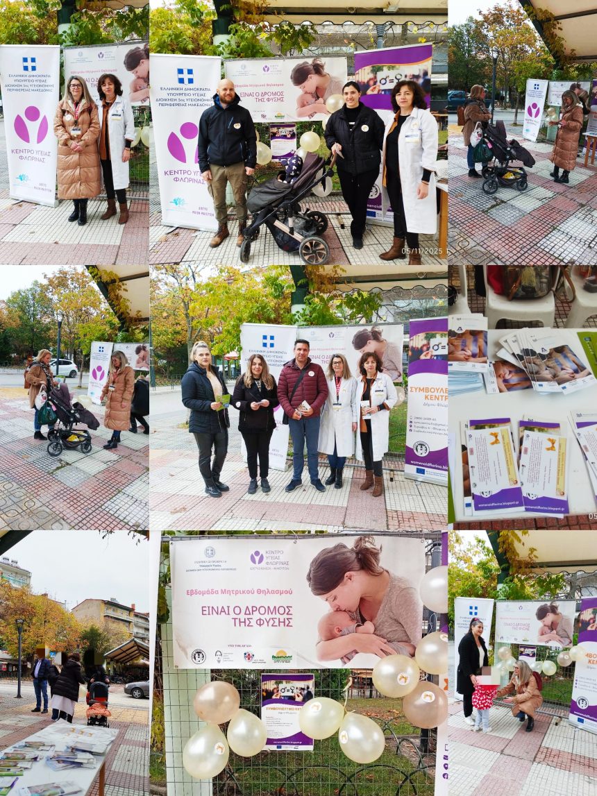 Με αφορμή την Πανελλήνια Εβδομάδα Μητρικού Θηλασμού (1-7 Νοεμβρίου), το Συμβουλευτικό Κέντρο Δήμου Φλώρινας, στο πλαίσιο της ενημέρωσης του κοινού για ζητήματα που αφορούν την ισότητα των φύλων, τα δικαιώματα των γυναικών και των παιδιών, πραγματοποίησε, σε συνεργασία με το Δίκτυο Μαιών του Κέντρου Υγείας Φλώρινας, ενημερωτική δράση την Τετάρτη 5 Νοεμβρίου 2025, στην Πλατεία Γεωργίου Μόδη, από τις 10:00 π.μ. έως τις 13:00 μ.μ.