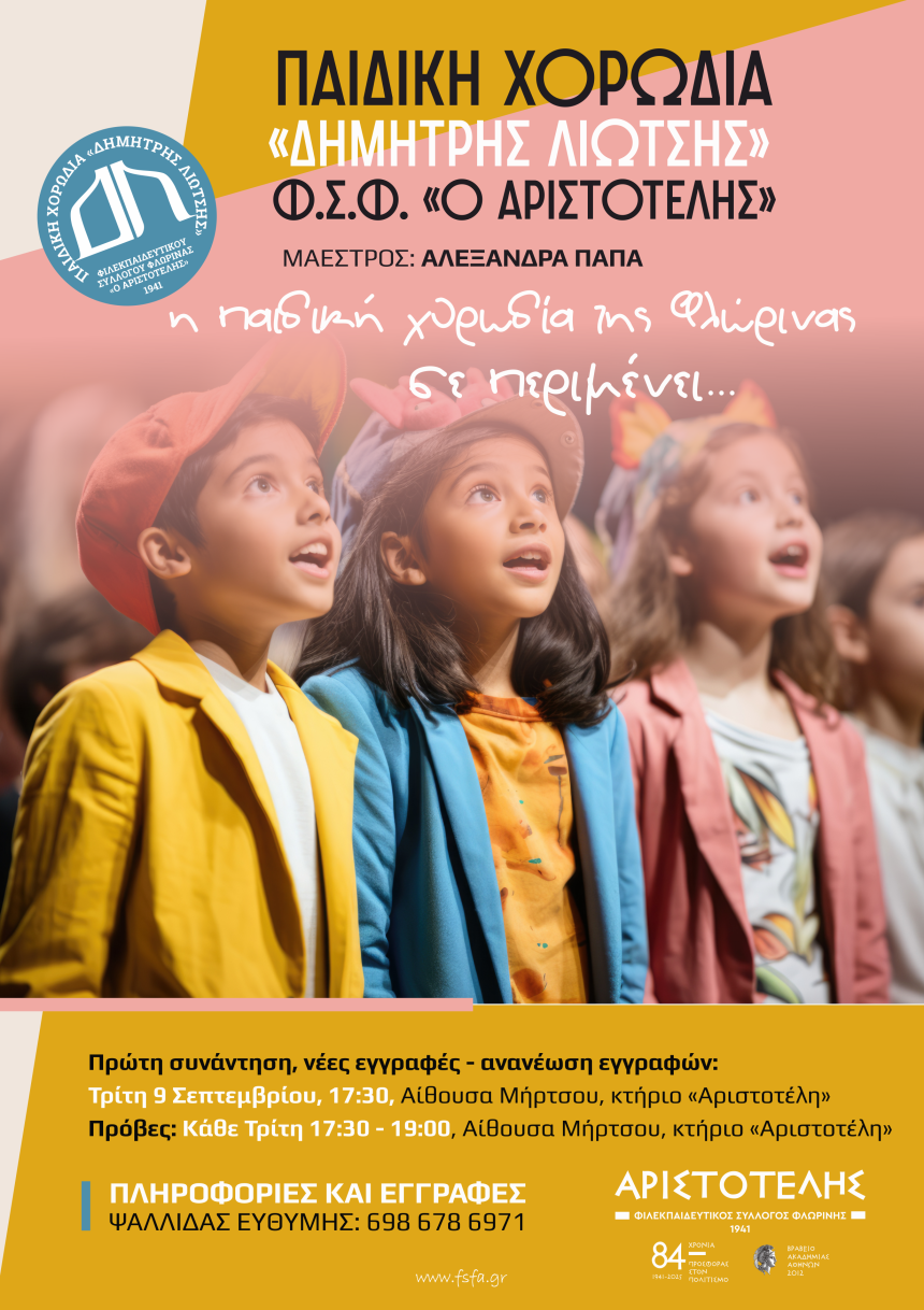 Από το Τμήμα της Παιδικής Χορωδίας «Δημήτρης Λιώτσης» του ΦΣΦΑ ανακοινώνεται η έναρξη νέων εγγραφών και η ανανέωση εγγραφών.