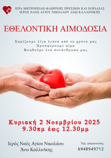 ΚοινωνίαΕθελοντική αιμοδοσία Τετάρτη 29 Οκτωβρίου, 2025 12:14 florinapress.gr SHARE Ίσως να ενδιαφέρει ... Δύο ώρες αργότερα τα σχολεία στον Δήμο Πρεσπών Κοπή βασιλόπιτας του Συλλόγου Εκπαιδευτικών Πληροφορικής Νομού Φλώρινας Η θεατρική παράσταση “Μικροί Κύριοι – Μικρές Κυρίες: Η δύναμη της φιλίας” Πρωτοβουλία αναγνώρισης των πολύτιμων υπηρεσιών στην τοπική κοινωνία Παράταση εγγραφών στους Ομίλους Καινοτομίας του Πειραματικού Δ.Σ Φλώρινας Share Ακολουθήστε μας8.4kFollowersLikeΤελευταία νέα Αγανακτισμένοι αγρότες : Ως εδώ, η κατάσταση δεν πάει άλλο Κοινωνία Πέμπτη 4 Δεκεμβρίου, 2025 Επισκέψεις Κινητών Μονάδων Υγείας σε απομακρυσμένες Κοινότητες του Δήμου Αμυνταίου Κοινωνία Πέμπτη 4 Δεκεμβρίου, 2025 Ευχαριστήρια επιστολή του Πειραματικού Σχολείου Φλώρινας προς το Κέντρο Περιβαλλοντικής Εκπαίδευσης & Αειφορίας Μελίτης Κοινωνία Πέμπτη 4 Δεκεμβρίου, 2025 Πωλείται Γερμανικός λέβητας ξύλου Κοινωνία Πέμπτη 4 Δεκεμβρίου, 2025