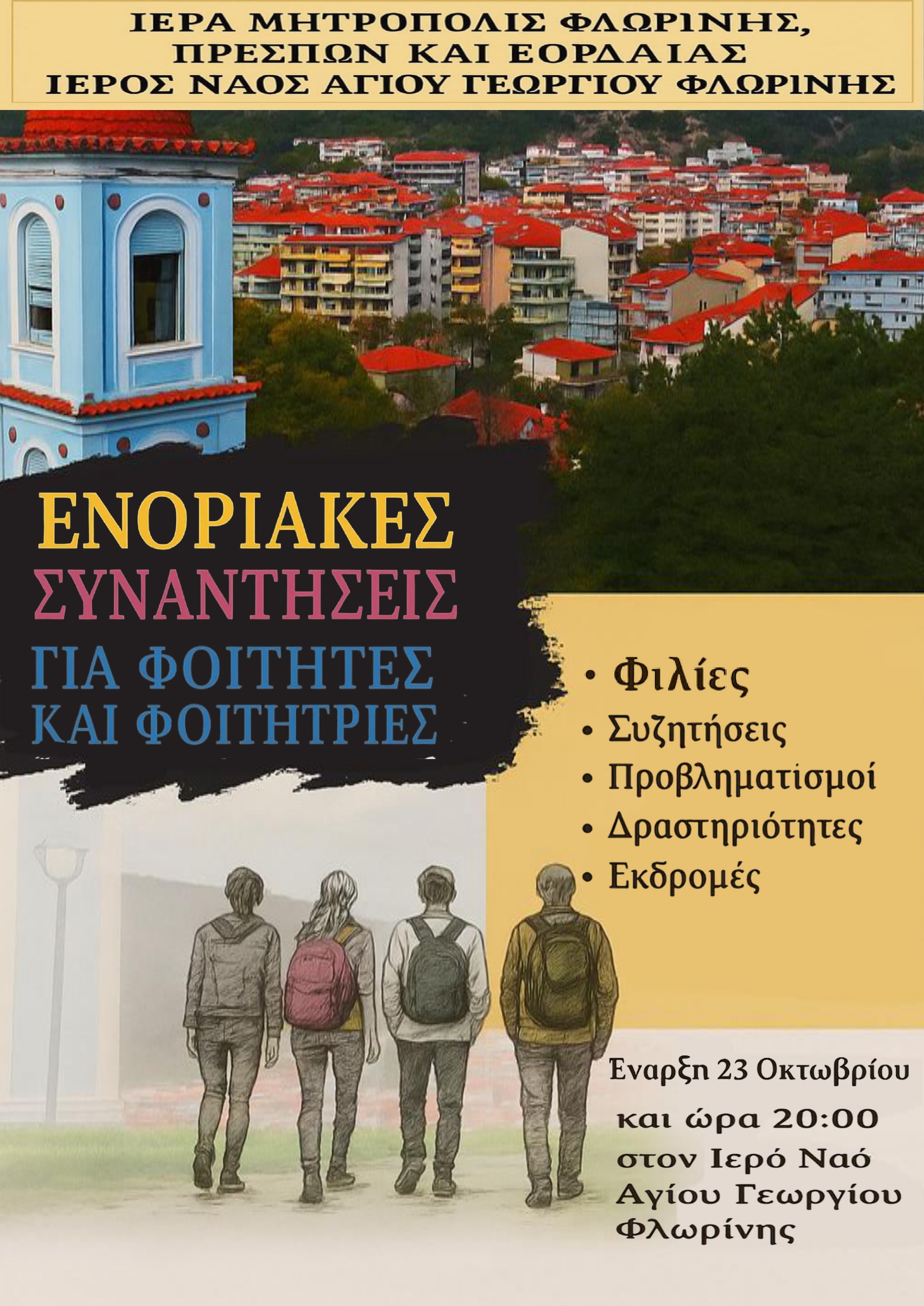 ΚοινωνίαΕνοριακές συναντήσεις για φοιτητές και φοιτήτριες στον Ιερό Ναό Αγίου Γεωργίου Φλώρινας Πέμπτη 23 Οκτωβρίου, 2025 12:25 florinapress.gr SHARE Ίσως να ενδιαφέρει ... Κηδεία του Αρχιμανδρίτη Κοσμά Λαμπρινού, ετών 57 «Εκδήλωση υποδοχής φοιτητών της Παιδαγωγικής Σχολής και της Σχολής Καλών Τεχνών της Φλώρινας» Ο εορτασμός της 28ης Οκτωβρίου στον Δήμο Πρεσπών Συλλυπητήριο μήνυμα της ΕΛΜΕ Φλώρινας Διακοπή ηλεκτροδότησης σε τοπικές κοινότητες του Δήμου Φλώρινας Share Ακολουθήστε μας8.4kFollowersLikeΤελευταία νέα Αγανακτισμένοι αγρότες : Ως εδώ, η κατάσταση δεν πάει άλλο Κοινωνία Πέμπτη 4 Δεκεμβρίου, 2025 Επισκέψεις Κινητών Μονάδων Υγείας σε απομακρυσμένες Κοινότητες του Δήμου Αμυνταίου Κοινωνία Πέμπτη 4 Δεκεμβρίου, 2025 Ευχαριστήρια επιστολή του Πειραματικού Σχολείου Φλώρινας προς το Κέντρο Περιβαλλοντικής Εκπαίδευσης & Αειφορίας Μελίτης Κοινωνία Πέμπτη 4 Δεκεμβρίου, 2025 Πωλείται Γερμανικός λέβητας ξύλου Κοινωνία Πέμπτη 4 Δεκεμβρίου, 2025