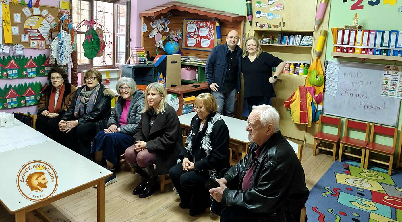 Μια ξεχωριστή και ιδιαίτερα συγκινητική συνάντηση πραγματοποιήθηκε στο Νηπιαγωγείο Ξινού Νερού το πρωί της Τετάρτης 1 Απριλίου 2026, όπου οι μικροί μαθητές υποδέχθηκαν με χαρά και ενθουσιασμό εκπροσώπους του ΚΑΠΗ Αμυνταίου, σε μια όμορφη δράση που ένωσε τις γενιές μέσα σε κλίμα αγάπης, ζεστασιάς και ανθρώπινης επαφής, ενόψει των Άγιων Ημερών του Πάσχα.