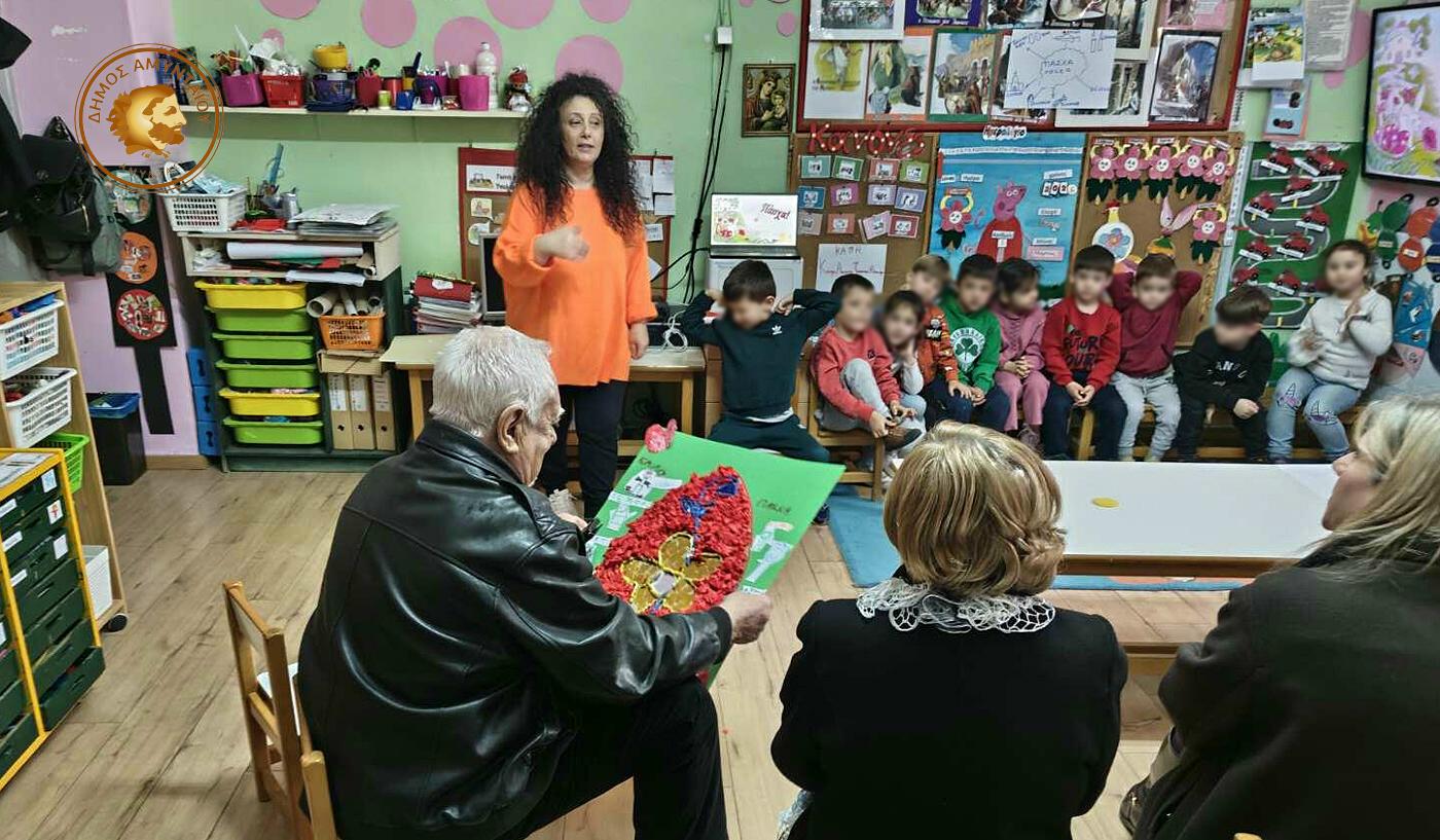 Τη συνάντηση οργάνωσε η Αντιδήμαρχος Διοικητικών Υπηρεσιών, Κοινωνικής Πολιτικής και Προσχολικής αγωγής Τάνια Γκάλαβου, η οποία στήριξε με την παρουσία της την όμορφη αυτή πρωτοβουλία, που αναδεικνύει τη σημασία της διαγενεακής επικοινωνίας και της ενίσχυσης των δεσμών ανάμεσα στα παιδιά και τους ανθρώπους της τρίτης ηλικίας.