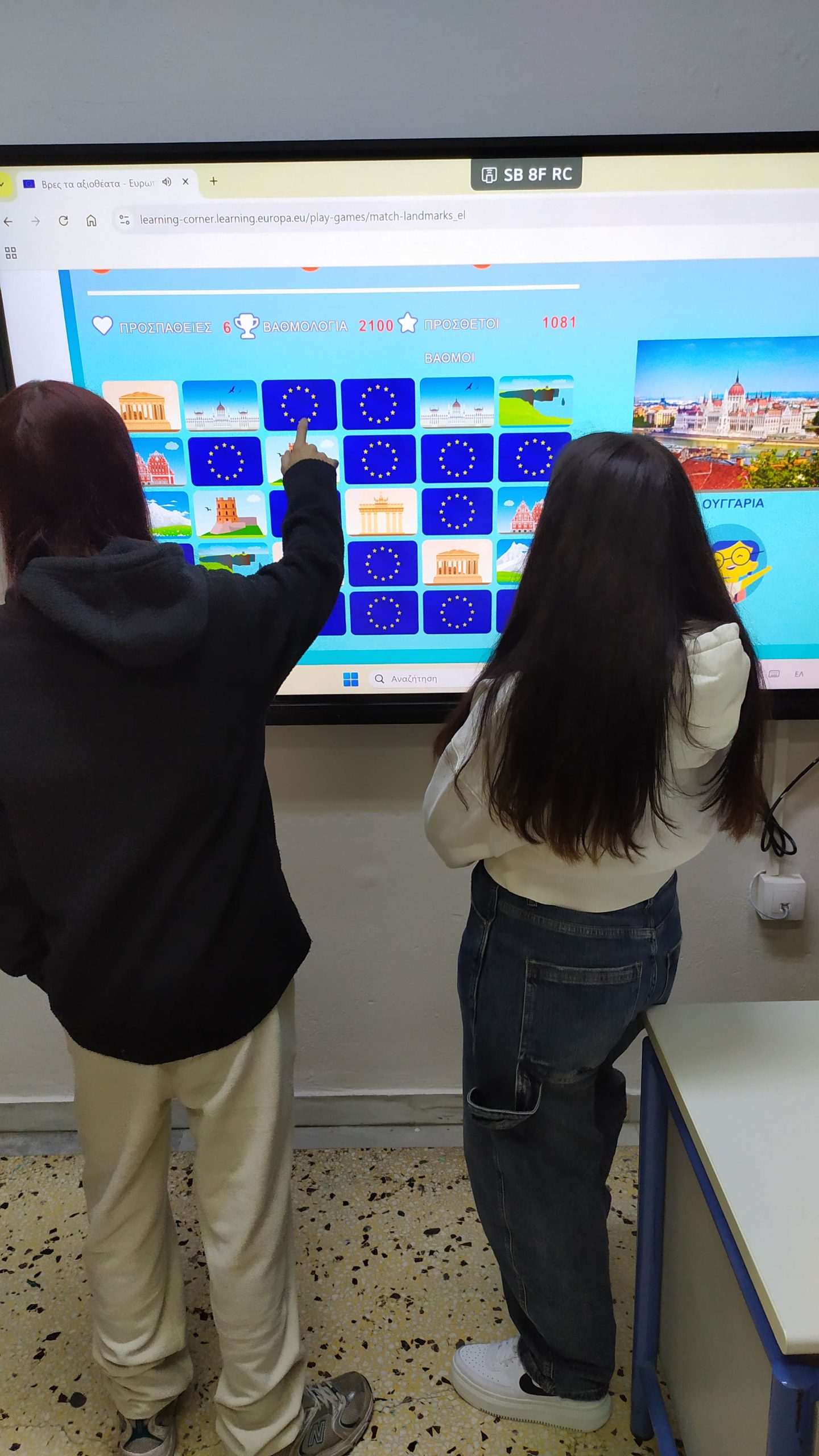 Οι μαθητές και οι μαθήτριες σχεδίασαν και ζωγράφισαν σημαίες κύριων ευρωπαϊκών χωρών κ έπαιξαν ενδιαφέροντα αλλά και διασκεδαστικά παιχνίδια μνήμης. Έτσι μπόρεσαν να διευρύνουν τις γνώσεις τους και να κατανοήσουν περισσότερα στοιχεία για την ευρωπαϊκή πραγματικότητα.