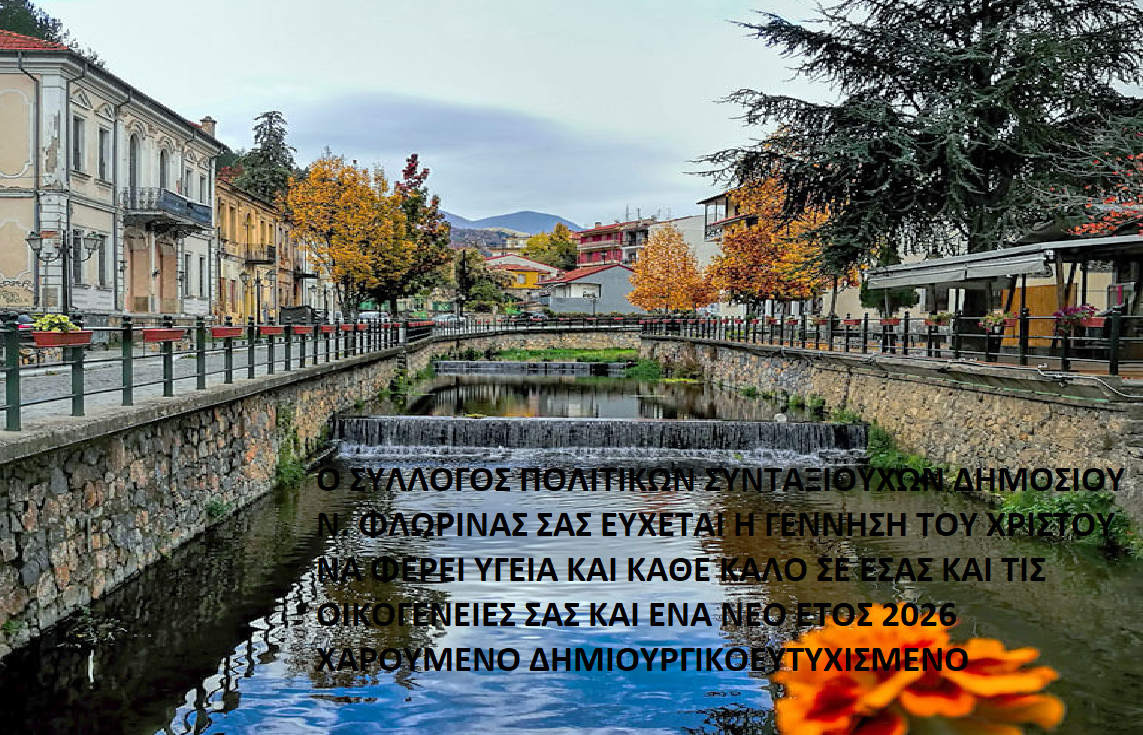 ΚοινωνίαΕυχές του Συλλόγου Πολιτικών Συνταξιούχων Δημοσίου Φλώρινας Παρασκευή 19 Δεκεμβρίου, 2025 12:57 florinapress.gr SHARE Ίσως να ενδιαφέρει ... Συγκέντρωση διαμαρτυρίας των επαγγελματιών της εστίασης στη Φλώρινα (φωτογραφίες & βίντεο) Δραστηριοποίηση των πωλητών λαϊκής αγοράς του Δήμου Αμυνταίου Προσφορές σε σούπερ μάρκετ για τα μέλη του συλλόγου πολυτέκνων Φλώρινας Τα εγκαίνια της έκθεσης φωτογραφίας «Γιάννης και Μίλτος Μανάκια. Τα πρόσωπα πίσω από τον φακό» Μήνυμα του Δημάρχου Φλώρινας για την έναρξη των Πανελλαδικών Εξετάσεων Share Ακολουθήστε μας8.4kFollowersLikeΤελευταία νέα Συνελήφθησαν 7 άτομα σε περιοχές της Κοζάνης και της Φλώρινας Κοινωνία Παρασκευή 19 Δεκεμβρίου, 2025 Ευχαριστήριο του 1ου ΕΠΑΛ Φλώρινας Κοινωνία Παρασκευή 19 Δεκεμβρίου, 2025 Ευχετήρια κάρτα του Βουλευτή ΝΔ Π.Ε. Φλώρινας Σταύρου Παπασωτηρίου Κοινωνία Πολιτική Παρασκευή 19 Δεκεμβρίου, 2025 Επίσκεψη του Αντιπεριφερειάρχη Φλώρινας Αθανάσιου Τάσκα στις Πρέσπες στο πλαίσιο των εορτών των Χριστουγέννων και της Πρωτοχρονιάς Πολιτική Πέμπτη 18 Δεκεμβρίου, 2025