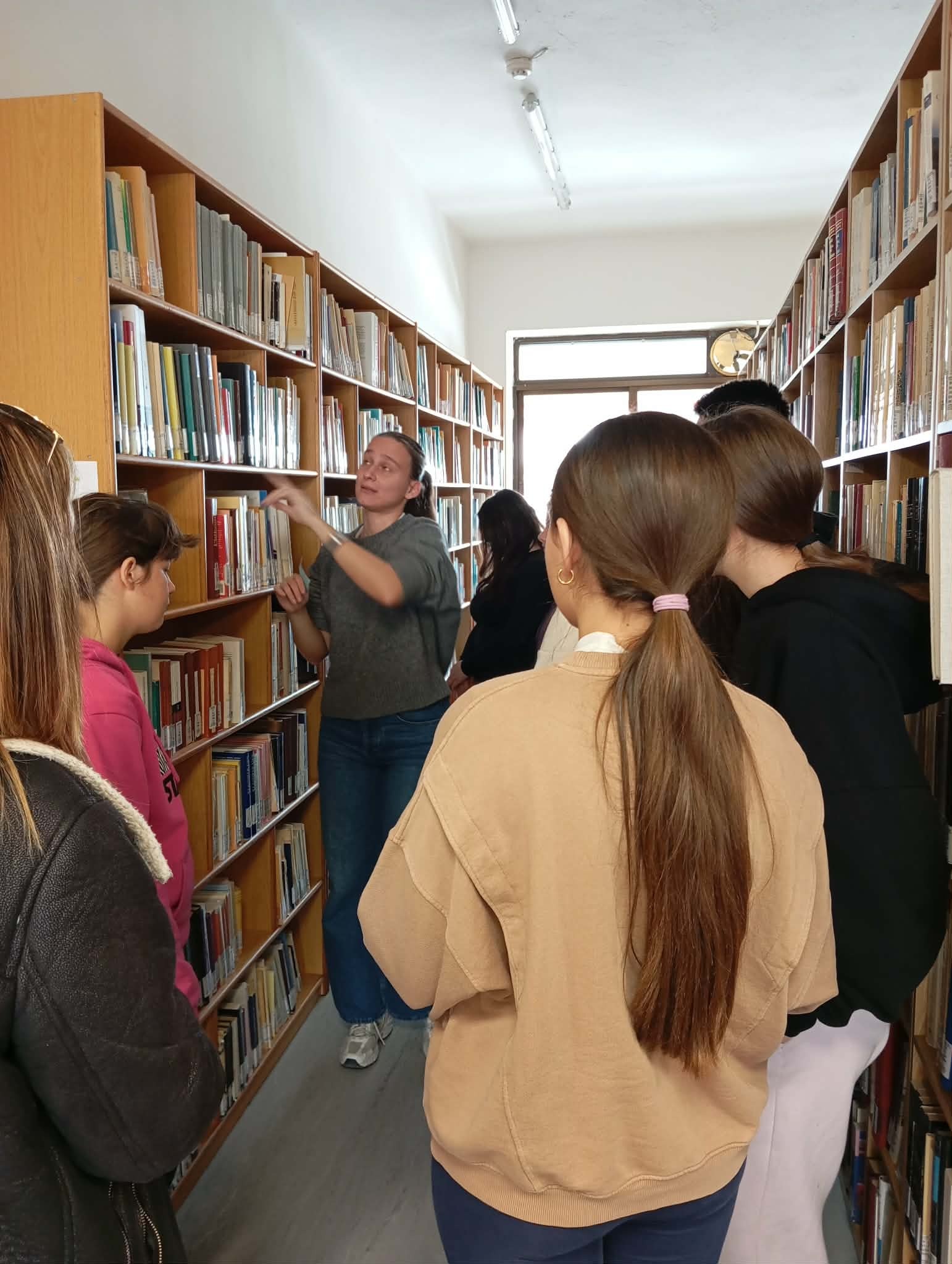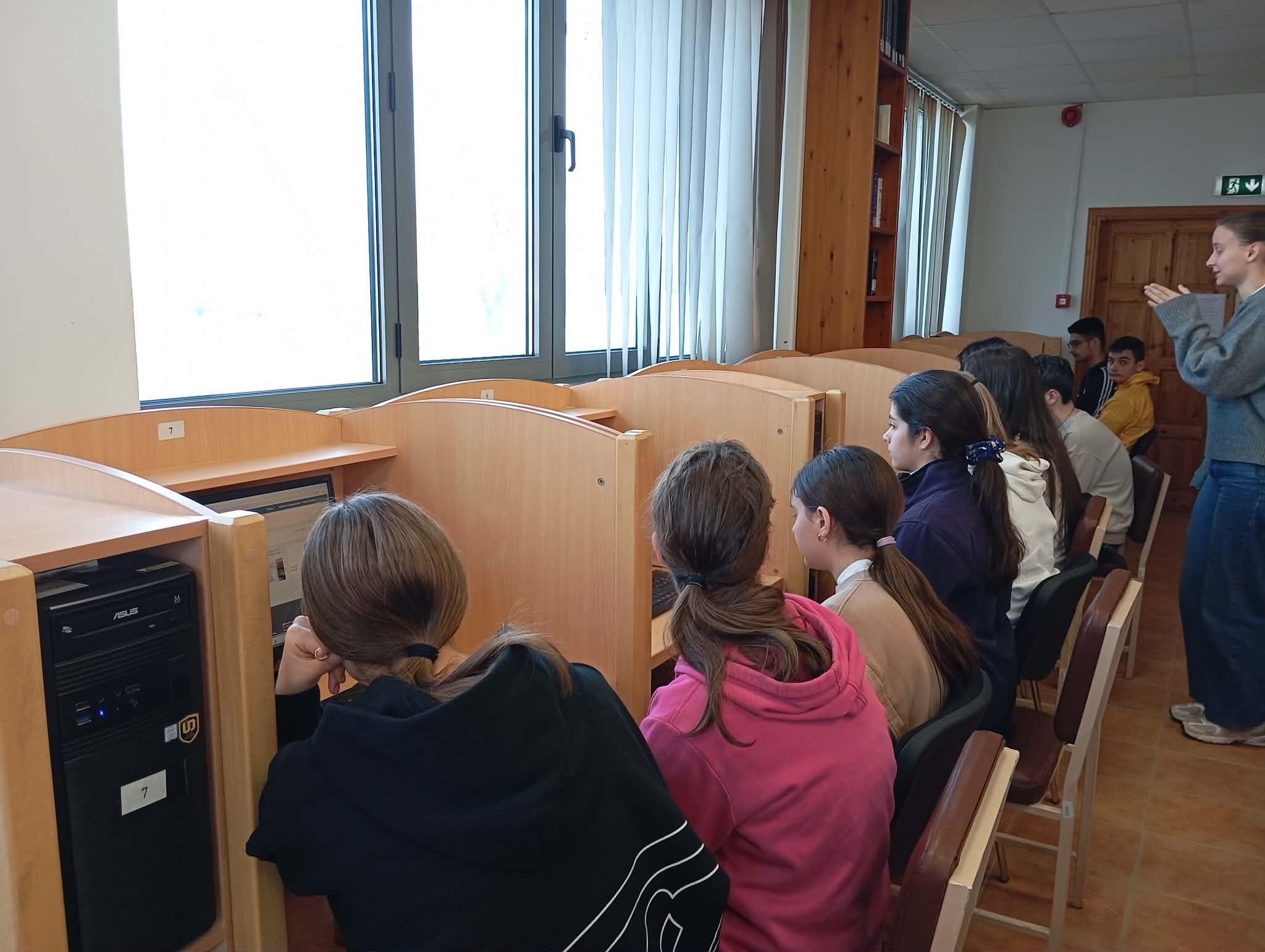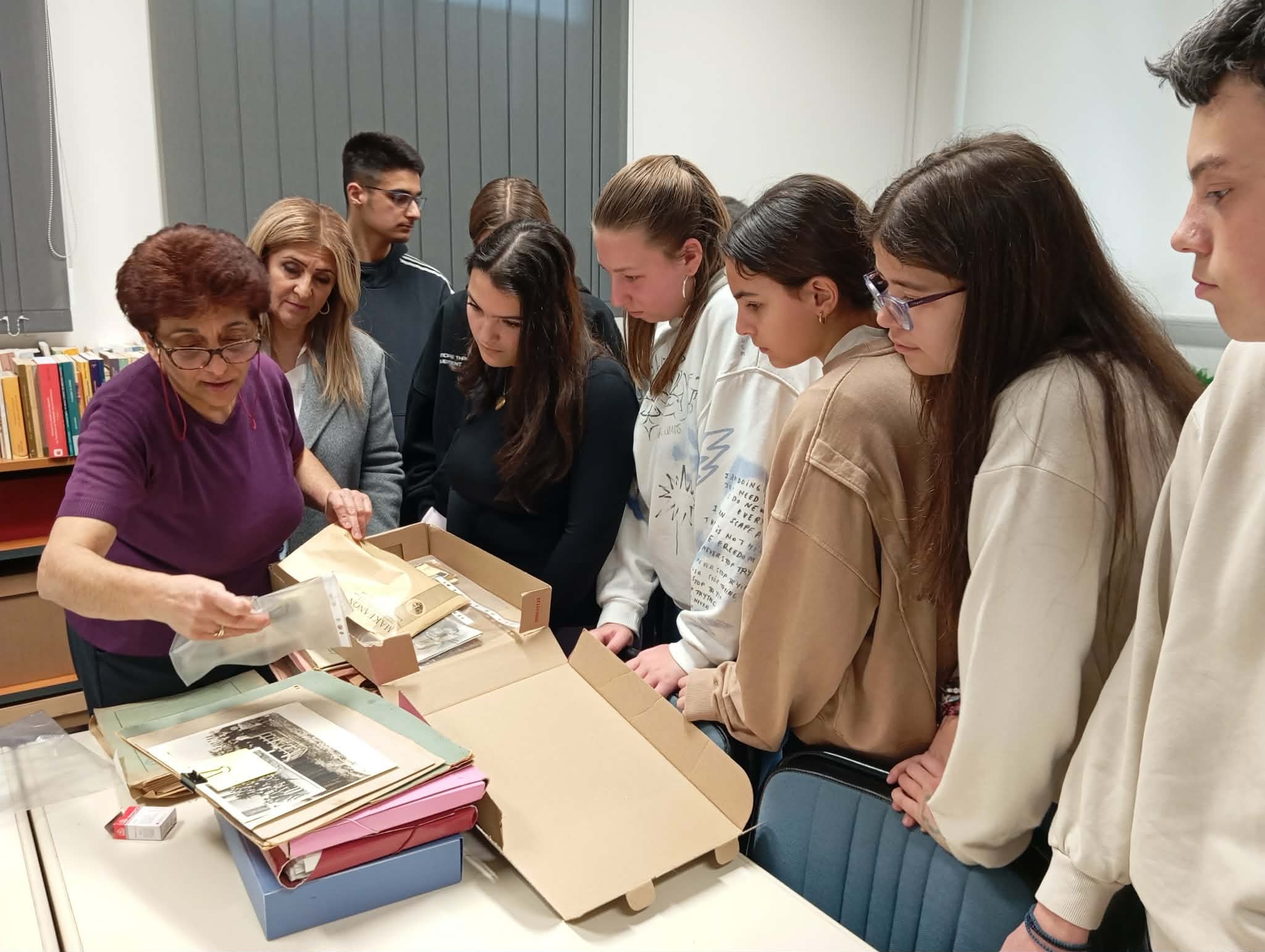 Η ξενάγηση στους χώρους της Βιβλιοθήκης και του Εργαστηρίου Τοπικής Ιστορίας αποτέλεσε μια ουσιαστική εισαγωγή στον κόσμο της ακαδημαϊκής γνώσης. Οι μαθητές είχαν την ευκαιρία να γνωρίσουν από κοντά τον τρόπο οργάνωσης και λειτουργίας μιας σύγχρονης πανεπιστημιακής βιβλιοθήκης, να εξοικειωθούν βιωματικά με τη μελέτη αρχείων και να έρθουν σε επαφή με συγκεκριμένες πηγές, καλλιεργώντας πολύτιμες δεξιότητες έρευνας και κριτικής σκέψης. Η υπεύθυνη της Βιβλιοθήκης κ. Αικατερίνη Γκώγκου δέχθηκε πρόθυμα και οργάνωσε άριστα την επίσκεψη των μαθητών/τριών μας, η κ. Σταυρίνα Ρίμπα ξενάγησε, ενημέρωσε και καθοδήγησε με ευρηματικό τρόπο τα παιδιά στη μελέτη τους και η κ. Ιωάννα Τσιλιγκαρίδου, στο Εργαστήριο Τοπικής Ιστορίας, τα μύησε στον μαγικό κόσμο της ανακάλυψης ποικίλων αρχείων του παρελθόντος.