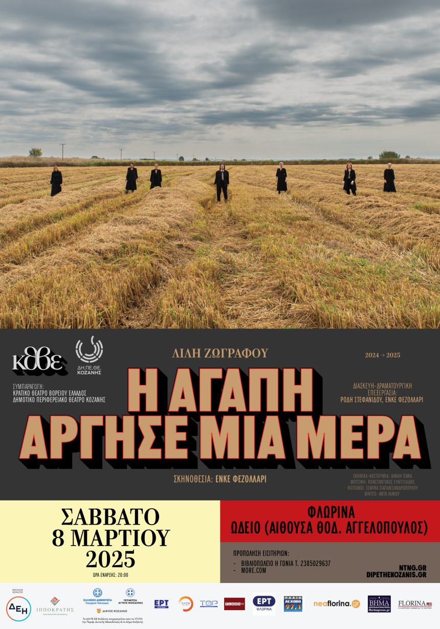 Μετά τα συνεχόμενα sold out και τις εξαιρετικές κριτικές σε Δυτική Μακεδονία, Θεσσαλονίκη, Βέροια και Καβάλα η παράσταση «Η Αγάπη άργησε μια μέρα» έρχεται και στη Φλώρινα.
