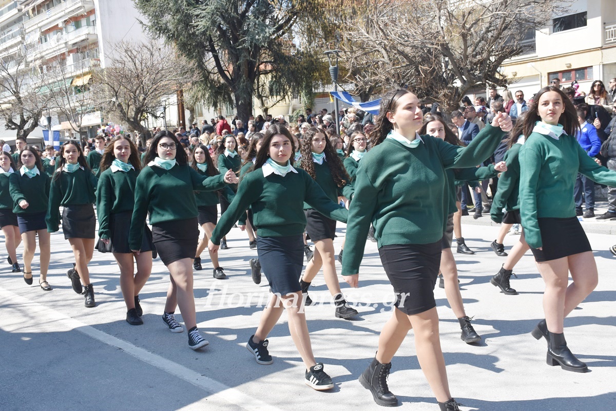 Η παρέλαση της 25ης Μαρτίου πραγματοποιήθηκε με ιδιαίτερη λαμπρότητα στη Φλώρινα, στο πλαίσιο των εορταστικών εκδηλώσεων για την επέτειο της απελευθέρωσης της χώρας μας από τον τουρκικό ζυγό.